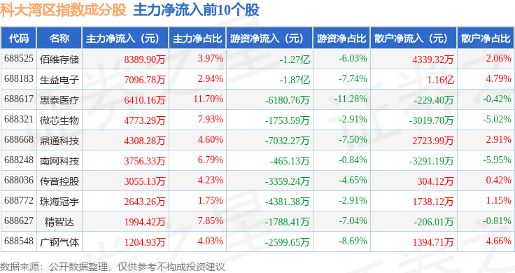 资金流向方面,科大湾区(000697)指数成份股当日主力资金净流入合计2.32亿元,游资资金净流出合计6.7亿元,散户资金净流入合计4.38亿元。成份股资金流向详情见下表: