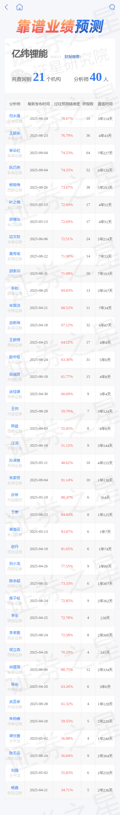 如果您对这家公司感兴趣,可以参考证星研究院统计的亿纬锂能的分析师业绩预测数据,其中根据民生证券的分析师邓永康预测公司未来PE为10.0(更多特色估值数据尽在证星研究院,所有数据均来源公开资料,期且所有资料都存在一定时间滞后,所有相关数据均不可作为投资决策单一依据)。