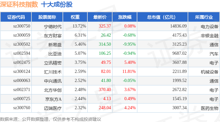 证券之星消息,9月8日,深证科技(399339)指数报收于8452.27点,涨0.42%,成交2853.8亿元,换手率2.6%。当日该指数成份股中,上涨的有65家,汇川技术以11.81%的涨幅领涨,下跌的有34家,新易盛以9.95%的跌幅领跌。