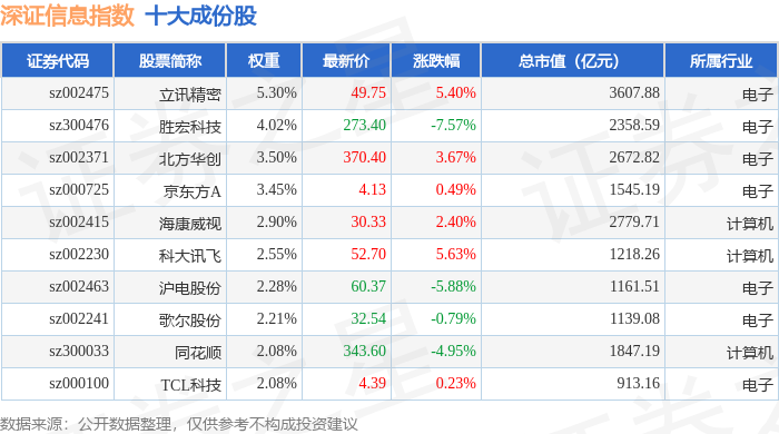 证券之星消息,9月8日,深证信息(399620)指数报收于5272.18点,涨0.66%,成交2345.82亿元,换手率3.62%。当日该指数成份股中,上涨的有84家,香农芯创以17.31%的涨幅领涨,下跌的有52家,胜宏科技以7.57%的跌幅领跌。
