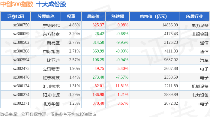 中创500(399625)指数十大成份股详情如下: