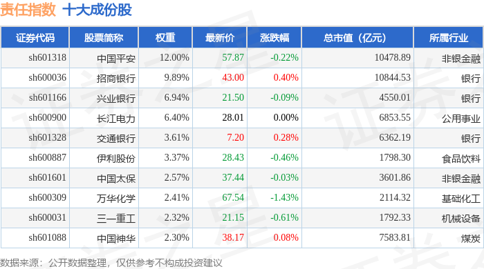 证券之星消息,9月10日,责任指数(000048)报收于1455.91点,跌0.23%,成交629.05亿元,换手率0.76%。当日该指数成份股中,上涨的有18家,大元泵业以5.67%的涨幅领涨,下跌的有80家,珠海冠宇以3.37%的跌幅领跌。