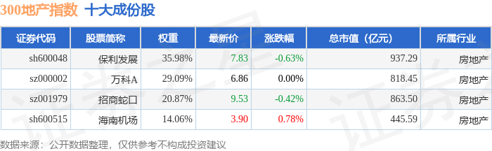 证券之星消息,9月10日,300地产(000952)指数报收于2870.68点,跌0.21%,成交28.63亿元,换手率1.03%。当日该指数成份股中,上涨的有1家,海南机场以0.78%的涨幅领涨,下跌的有2家,保利发展以0.63%的跌幅领跌。
