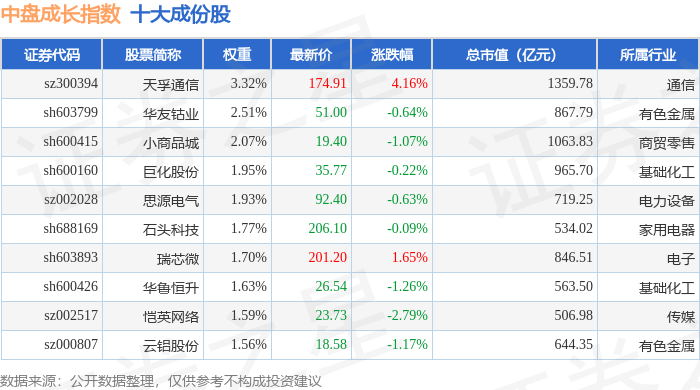 中盘成长(399374)指数十大成份股详情如下: