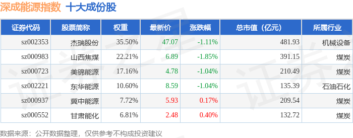 证券之星消息,9月10日,深成能源(399680)指数报收于662.24点,跌1.05%,成交10.12亿元,换手率0.78%。当日该指数成份股中,上涨的有2家,甘肃能化以0.4%的涨幅领涨,下跌的有4家,山西焦煤以1.85%的跌幅领跌。