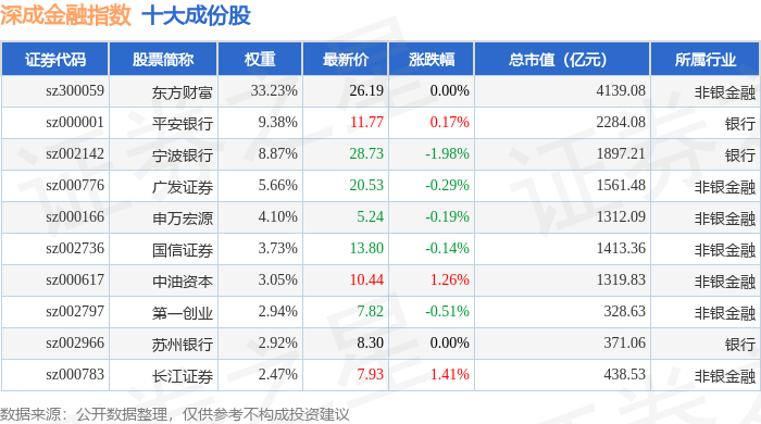 证券之星消息,9月10日,深成金融(399686)指数报收于2261.31点,跌0.15%,成交198.47亿元,换手率0.91%。当日该指数成份股中,上涨的有13家,电投产融以2.12%的涨幅领涨,下跌的有14家,宁波银行以1.98%的跌幅领跌。