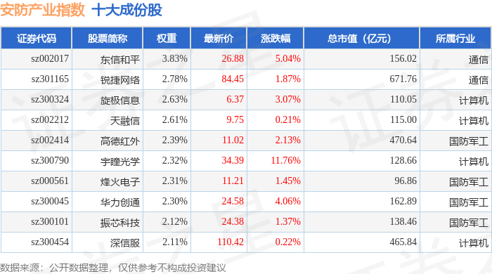 近10日内安防产业(399693)指数成份股做了调整,新纳入了1只股票,剔除了1只股票。