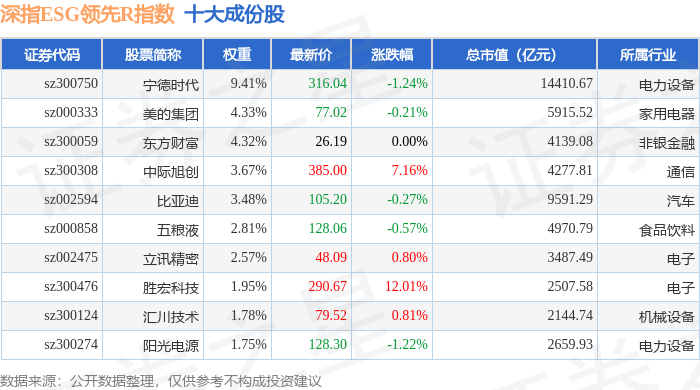 深指ESG领先R(470029)指数十大成份股详情如下: