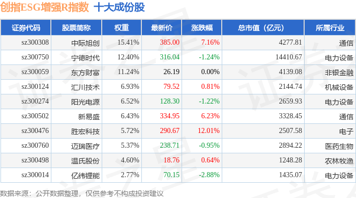 创指ESG增强R(470034)指数十大成份股详情如下: