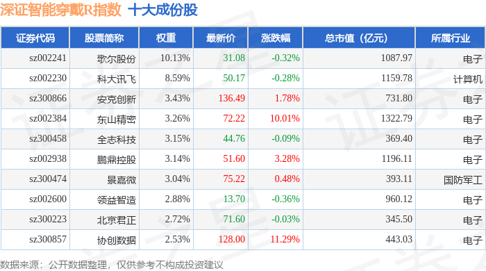 深证智能穿戴R(470074)指数十大成份股详情如下: