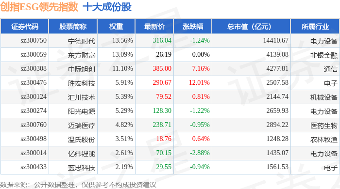 资金流向方面,创指ESG领先(970031)指数成份股当日主力资金净流出合计6.12亿元,游资资金净流出合计4.98亿元,散户资金净流入合计11.11亿元。成份股资金流向详情见下表: