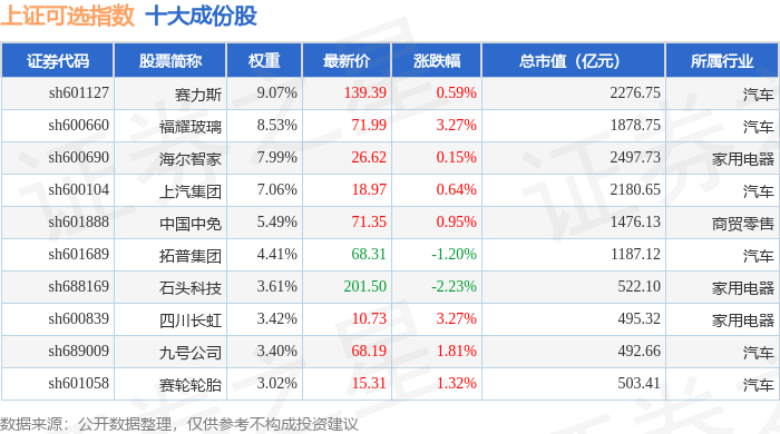 上证可选(000035)指数十大成份股详情如下:
