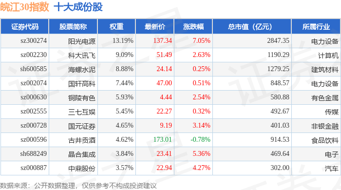 资金流向方面,皖江30(399350)指数成份股当日主力资金净流入合计2.4亿元,游资资金净流出合计4.23亿元,散户资金净流入合计1.83亿元。成份股资金流向详情见下表: