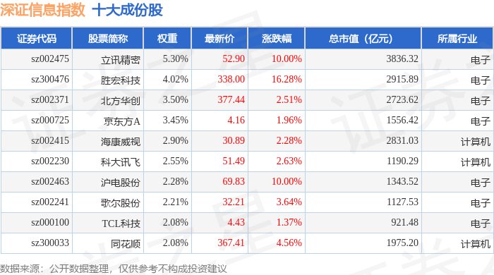 证券之星消息,9月11日,深证信息(399620)指数报收于5501.55点,涨5.16%,成交2865.42亿元,换手率4.26%。当日该指数成份股中,上涨的有137家,香农芯创以20.0%的涨幅领涨,下跌的有3家,朗新集团以4.27%的跌幅领跌。