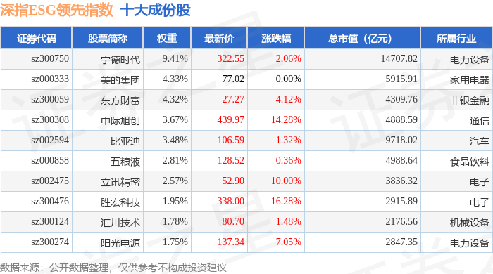 深指ESG领先(970029)指数十大成份股详情如下: