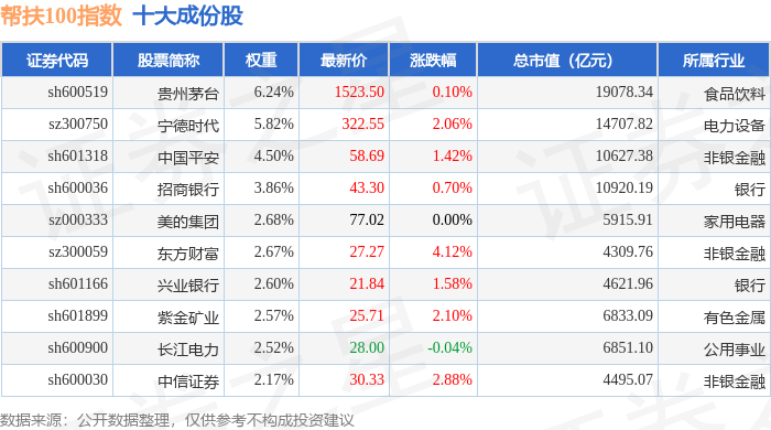 资金流向方面,帮扶100(980065)指数成份股当日主力资金净流入合计30.62亿元,游资资金净流出合计27.48亿元,散户资金净流出合计3.14亿元。成份股资金流向详情见下表:
