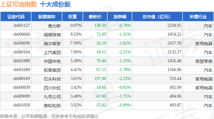 证券之星消息,9月12日,上证可选(000035)指数报收于3065.52点,跌1.17%,成交381.47亿元,换手率1.47%。当日该指数成份股中,上涨的有7家,春风动力以4.82%的涨幅领涨,下跌的有43家,均胜电子以3.99%的跌幅领跌。