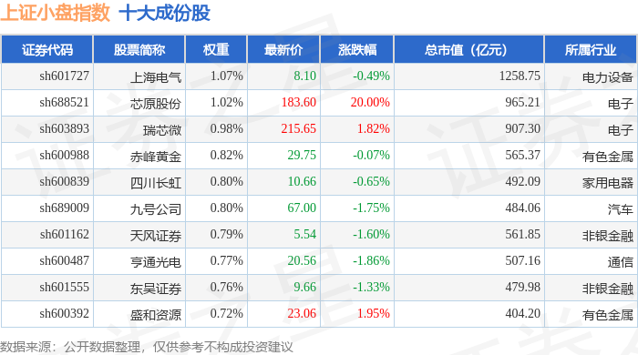 证券之星消息,9月12日,上证小盘(000045)指数报收于5589.64点,涨0.48%,成交2689.41亿元,换手率2.44%。当日该指数成份股中,上涨的有123家,芯原股份以20.0%的涨幅领涨,下跌的有194家,晶科科技以9.98%的跌幅领跌。