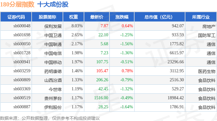 证券之星消息,9月12日,180分层(000093)指数报收于12136.92点,跌0.25%,成交3744.41亿元,换手率0.63%。当日该指数成份股中,上涨的有50家,寒武纪以7.28%的涨幅领涨,下跌的有128家,传音控股以7.49%的跌幅领跌。