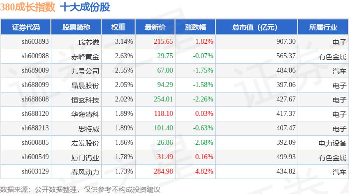 证券之星消息,9月12日,380成长(000117)指数报收于4237.31点,跌0.09%,成交730.53亿元,换手率2.06%。当日该指数成份股中,上涨的有39家,豫光金铅以10.02%的涨幅领涨,下跌的有79家,均胜电子以3.99%的跌幅领跌。