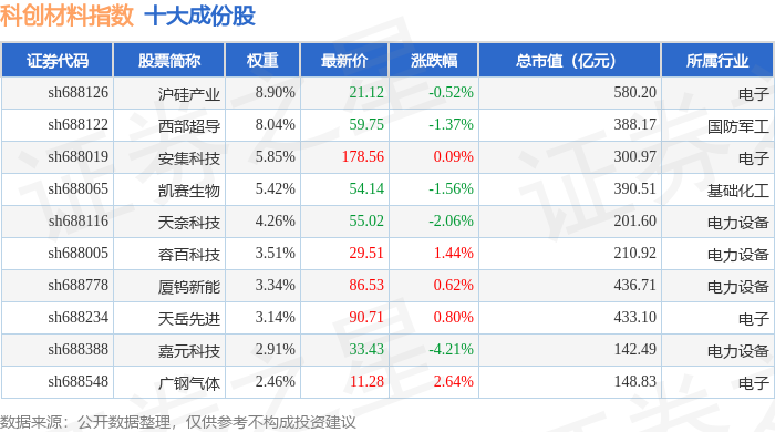近10日内科创材料(000689)指数成份股做了调整,新纳入了4只股票,剔除了4只股票。