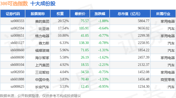证券之星消息,9月12日,300可选(000911)指数报收于6573.21点,跌1.29%,成交394.61亿元,换手率1.11%。当日该指数成份股中,下跌的有21家,石头科技以2.23%的跌幅领跌。