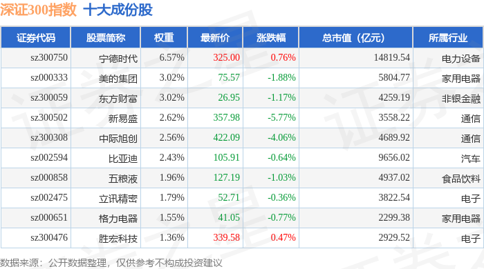 深证300(399007)指数十大成份股详情如下: