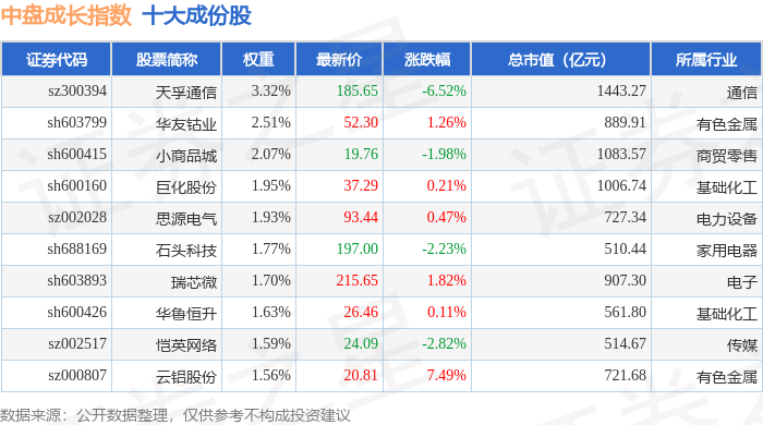 证券之星消息,9月12日,中盘成长(399374)指数报收于4190.69点,跌0.31%,成交1121.5亿元,换手率2.28%。当日该指数成份股中,上涨的有36家,江波龙以13.83%的涨幅领涨,下跌的有64家,天孚通信以6.52%的跌幅领跌。