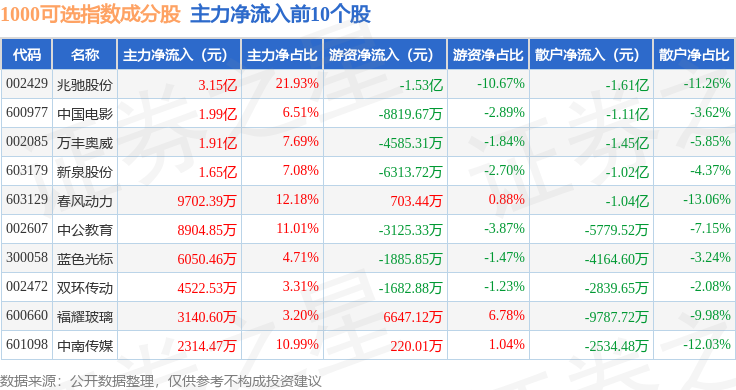 资金流向方面,1000可选(399384)指数成份股当日主力资金净流出合计48.42亿元,游资资金净流入合计14.42亿元,散户资金净流入合计34.0亿元。成份股资金流向详情见下表: