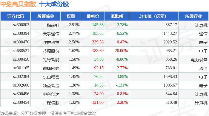 中盘高贝(399407)指数十大成份股详情如下:
