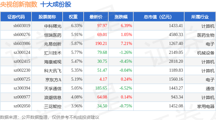 央视创新(399551)指数十大成份股详情如下:
