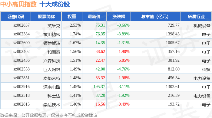 证券之星消息,9月12日,中小高贝(399664)指数报收于1437.08点,跌0.26%,成交1700.43亿元,换手率6.28%。当日该指数成份股中,上涨的有40家,科华数据以10.01%的涨幅领涨,下跌的有59家,游族网络以5.91%的跌幅领跌。