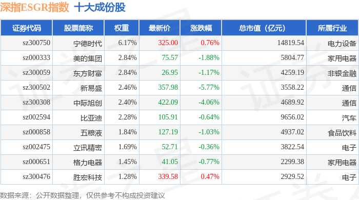 资金流向方面,深指ESGR(470026)指数成份股当日主力资金净流出合计222.6亿元,游资资金净流入合计60.2亿元,散户资金净流入合计162.4亿元。成份股资金流向详情见下表: