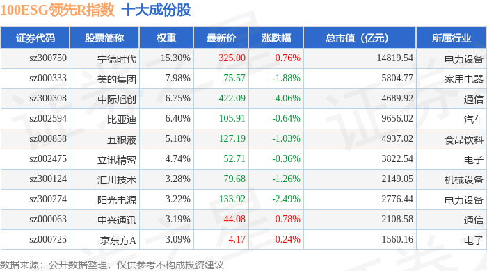 100ESG领先R(470030)指数十大成份股详情如下: