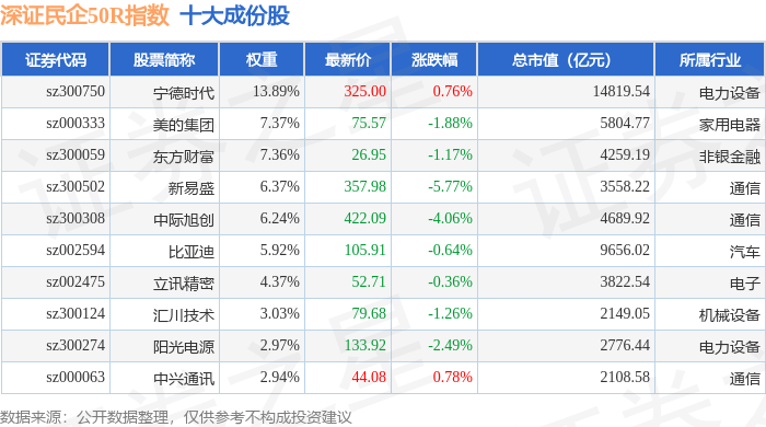 证券之星消息,9月12日,深证民企50R(470057)指数报收于3740.19点,跌1.1%,成交2182.31亿元,换手率2.99%。当日该指数成份股中,上涨的有18家,康龙化成以3.94%的涨幅领涨,下跌的有32家,天孚通信以6.52%的跌幅领跌。