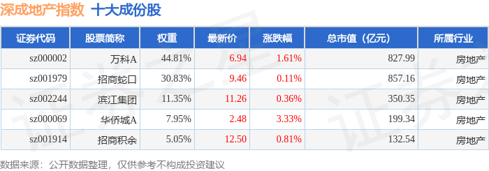 证券之星消息,9月12日,深成地产(971001)指数报收于510.47点,涨1.1%,成交40.47亿元,换手率2.18%。当日该指数成份股中,上涨的有5家,华侨城A以3.33%的涨幅领涨。