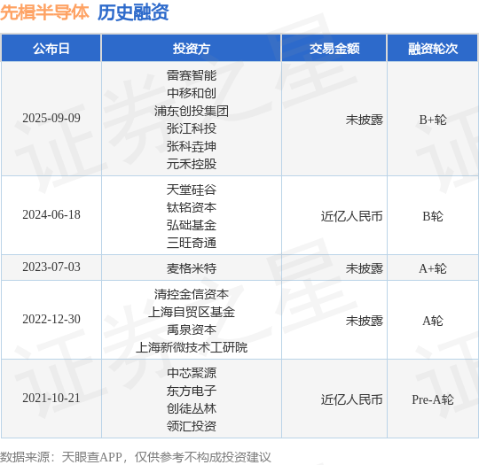 证券之星消息,根据天眼查APP于9月9日公布的信息整理,上海先楫半导体科技有限公司B+轮融资,融资额未披露,参与投资的机构包括雷赛智能,中移和创,浦东创投集团,张江科投,张科垚坤,元禾控股。