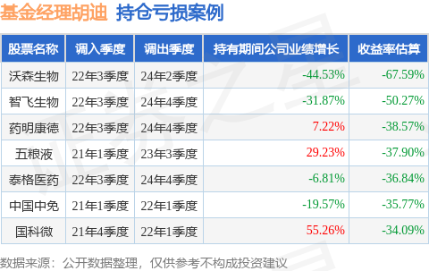 胡迪管理的摩根中证创新药产业ETF基金在22年3季度买入沃森生物,在持有1年又3个季度后在24年2季度卖出。持有期间的估算收益率为-67.59%,持有期间沃森生物在2022年到2024年的年报营业总收入降幅为44.53%。