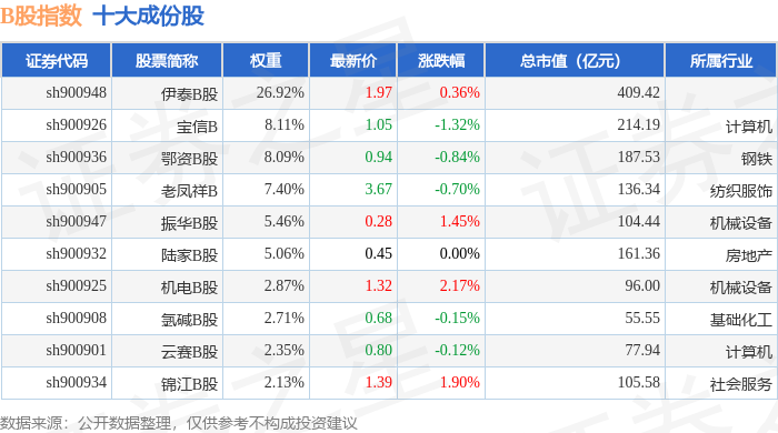 资金流向方面,B股指数(000003)成份股当日主力资金净流入合计7.13万元,游资资金净流出合计142.5万元,散户资金净流入合计135.37万元。成份股资金流向详情见下表: