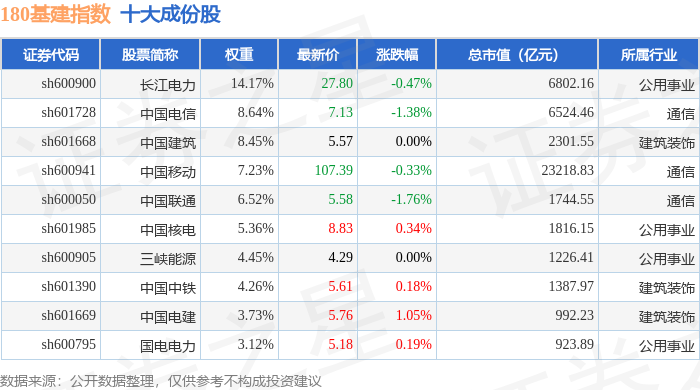 资金流向方面,180基建(000025)指数成份股当日主力资金净流出合计16.32亿元,游资资金净流入合计4.84亿元,散户资金净流入合计11.48亿元。成份股资金流向详情见下表: