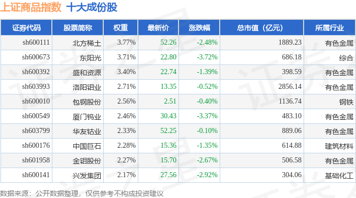 上证商品(000066)指数十大成份股详情如下: