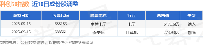 近10日内科创50(000688)指数成份股做了调整,新纳入了1只股票,剔除了1只股票。