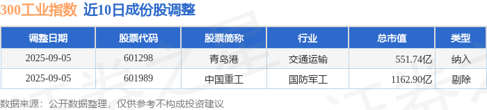 近10日内300工业(000910)指数成份股做了调整,新纳入了1只股票,剔除了1只股票。