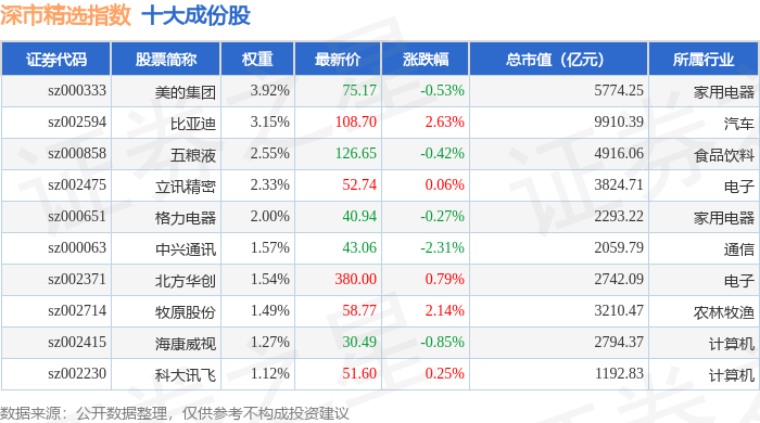深市精选(399013)指数十大成份股详情如下: