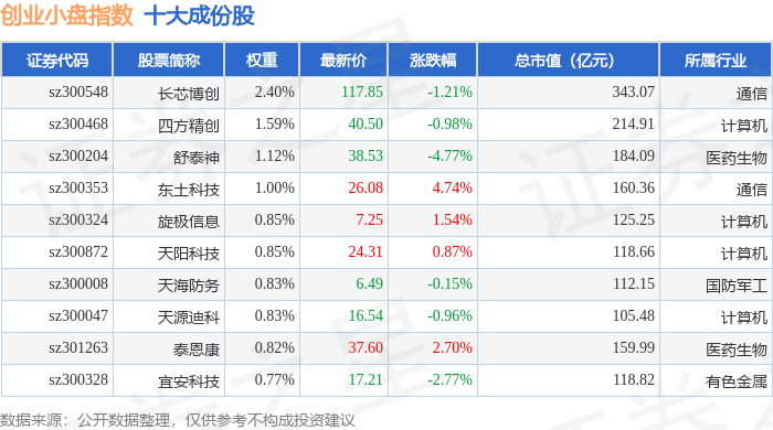证券之星消息,9月15日,创业小盘(399020)指数报收于1767.02点,涨0.0%,成交908.49亿元,换手率4.54%。当日该指数成份股中,上涨的有103家,中一科技以20.0%的涨幅领涨,下跌的有193家,佳发教育以7.81%的跌幅领跌。