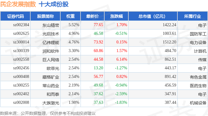 证券之星消息,9月15日,民企发展(399292)指数报收于1437.41点,涨0.29%,成交1188.65亿元,换手率4.17%。当日该指数成份股中,上涨的有103家,康盛股份以10.02%的涨幅领涨,下跌的有132家,佳发教育以7.81%的跌幅领跌。