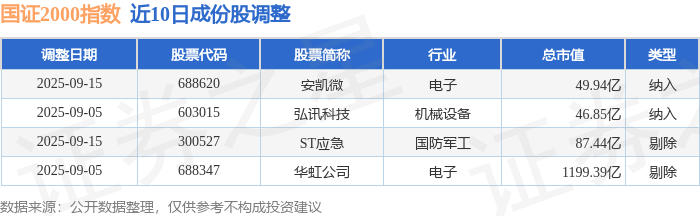 近10日内国证2000(399303)指数成份股做了调整,新纳入了2只股票,剔除了2只股票。
