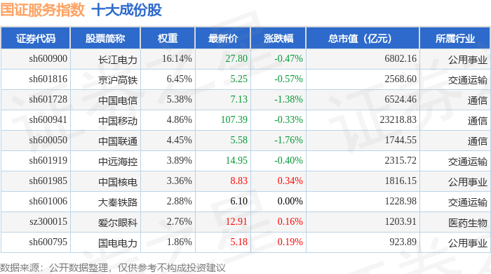 国证服务(399320)指数十大成份股详情如下: