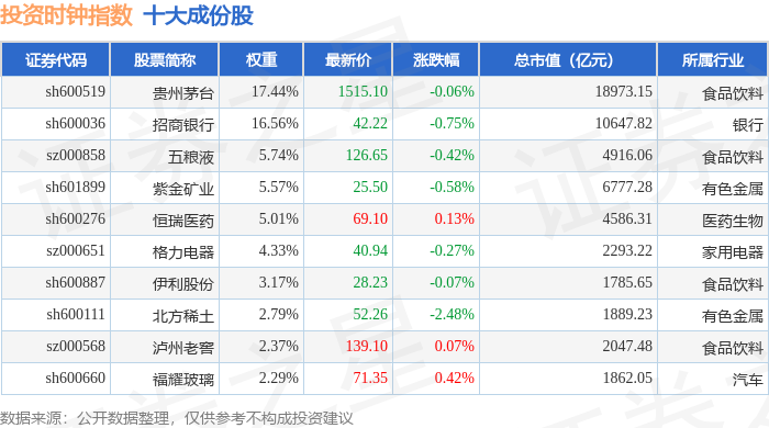投资时钟(399391)指数十大成份股详情如下: