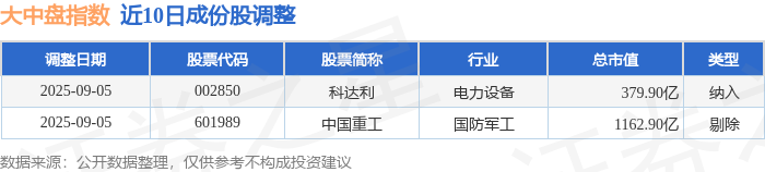 近10日内大中盘(399400)指数成份股做了调整,新纳入了1只股票,剔除了1只股票。